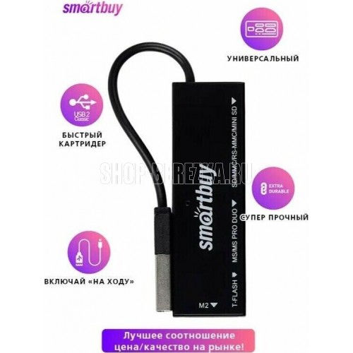 Мультиформатный картридер, Интерфейс: 2.0, Количество слотов для карт памяти: 4 ,Скорость передачи данных: до 480 Мбит/сек, Встроенный регулятор напряжения, Режим Plug-n-Play, совместимость: SD(Secure Digital) / SDHC (Secure Digital High Capacity) / MMC (MultiMediaCard) / MMCplus / MMCmobile / RS –MMC / microSD / TransFlash / microSDHC / Memory Stick Micro (M2) / xDТребуется адаптер: miniSD / miniSDHC / MMCmicro.