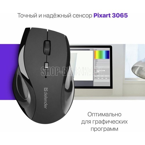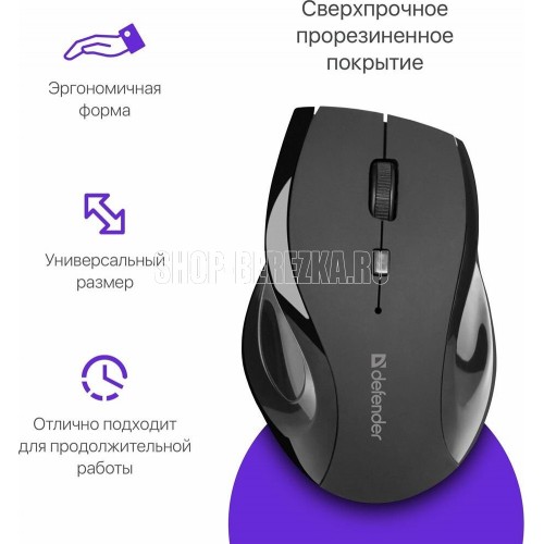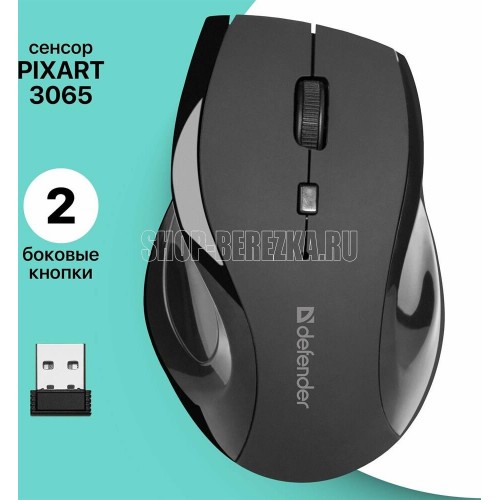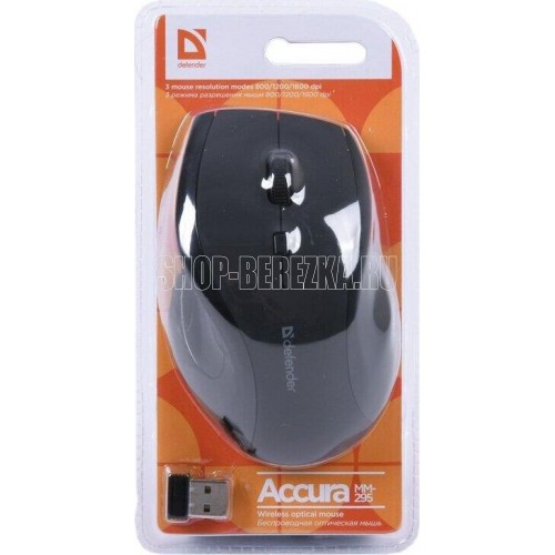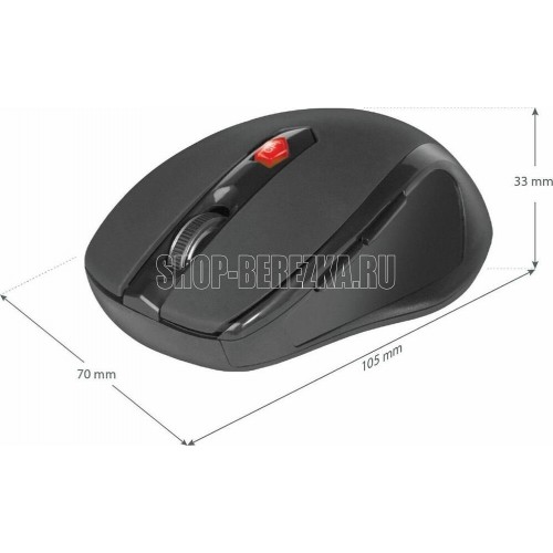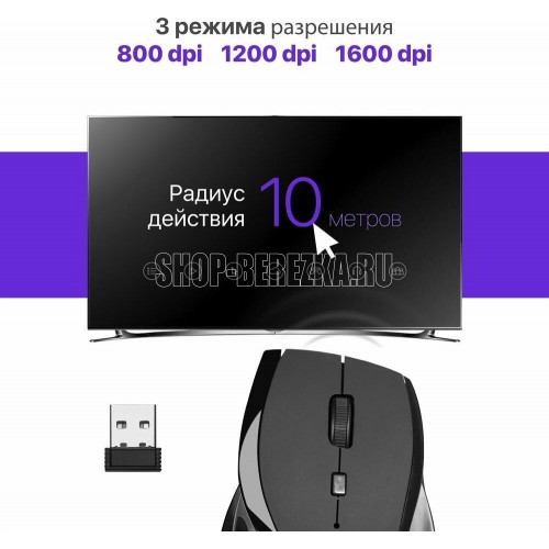 Мышь беспроводная, оптическая, сменное разрешение 800/1200/1600 dpi, количество кнопок: 5 +колесо прокрутки, интерфейс подключения USB, эргономичная форма, батарейка 1хАА (в комплекте), цвет - черный.