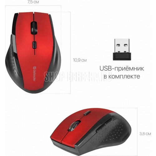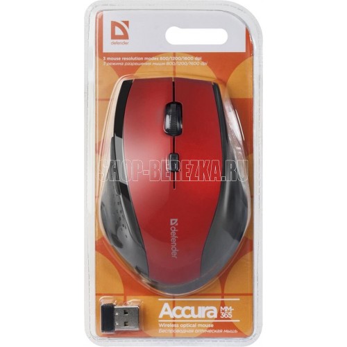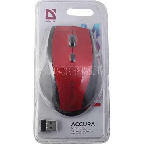 Мышь беспроводная оптическая, интерфейс USB, 5 клавиш+ колесо-кнопка, сменное разрешение сенсора 800/1200/1600 dpi, питание - 2 хAAA (в комплекте) цвет: красный.