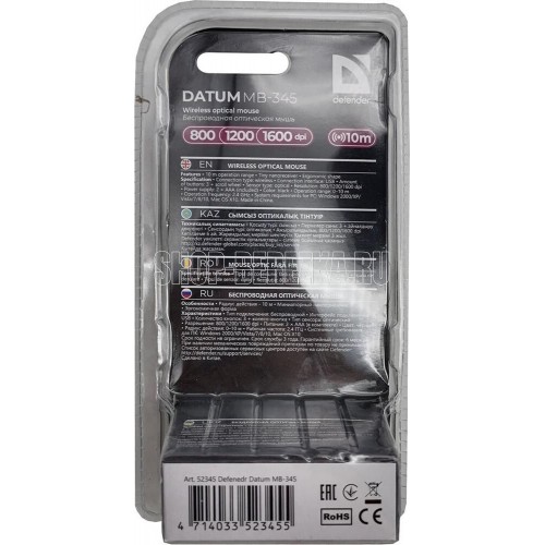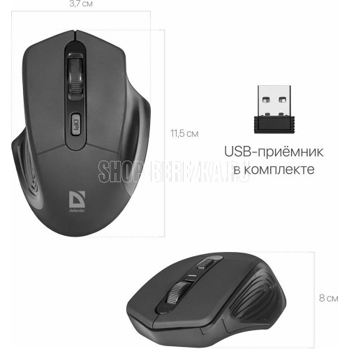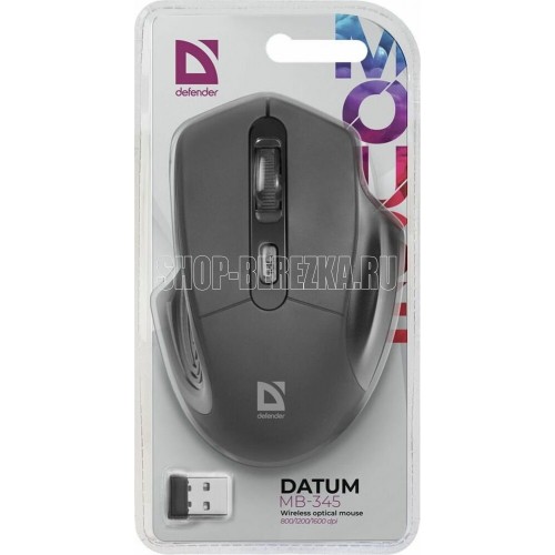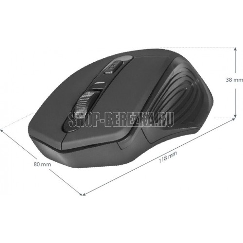 Мышь беспроводная оптическая, интерфейс USB, 5 клавиш+ колесо-кнопка, разрешение сенсора 800/1200/1600 dpi, цвет: черный