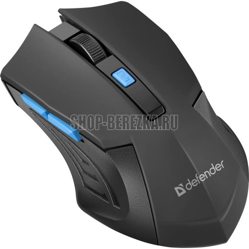 Мышь беспроводная оптическая, интерфейс USB, 5 клавиш+ колесо-кнопка, разрешение сенсора 800/1200/1600 dpi, радиус действия - 10 м, цвет - черный/синий.