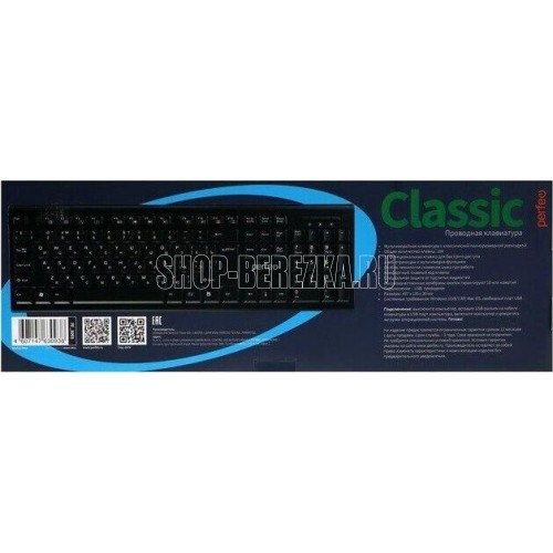 Клавиатура проводная, классическая полноразмерная раскладка с крупной клавишей Enter, интерфейс USB, количество клавиш - 104, длина кабеля - 1,2 м.