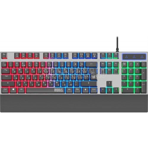 Проводная игровая клавиатура с радужной подсветкой и встроенной подставкой для запястий. В данной модели предусмотрена функция управления мультимедийными программами с помощью кнопки FN.