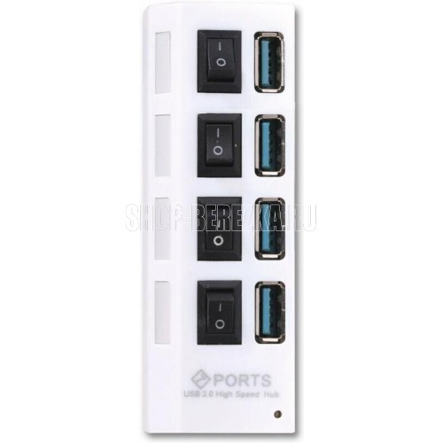 SMARTBUY (SBHA-7304-W) USB 3.0 хаб + выкл., 4 порта, белый