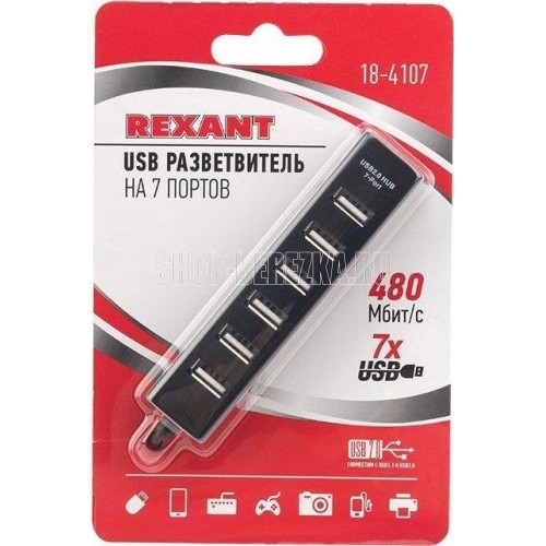 REXANT (18-4107) РАЗВЕТВИТЕЛЬ USB НА 7 ПОРТОВ, ЧЕРНЫЙ