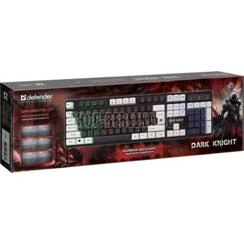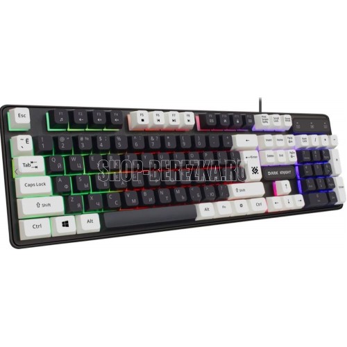 Кейкапы двух цветов Радужная подсветка 12 функциональных кнопок: - Дополнительные клавиши для управления звуком, запуска приложений «Мой компьютер» и «Калькулятор» Управление мультимедийными программами: - Активируются клавишей FN Возможность выключения подсветки Увеличенная площадь клавиш-модификаторов (Ctrl, Shift), клавиш Enter и BackSpace Влагоустойчивая конструкция клавиатуры Многофункциональное программное обеспечение: - Работает только с операционной системой Windows