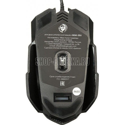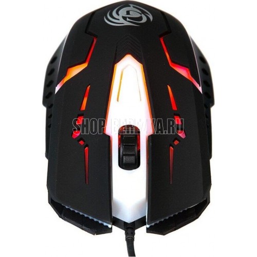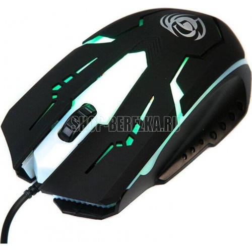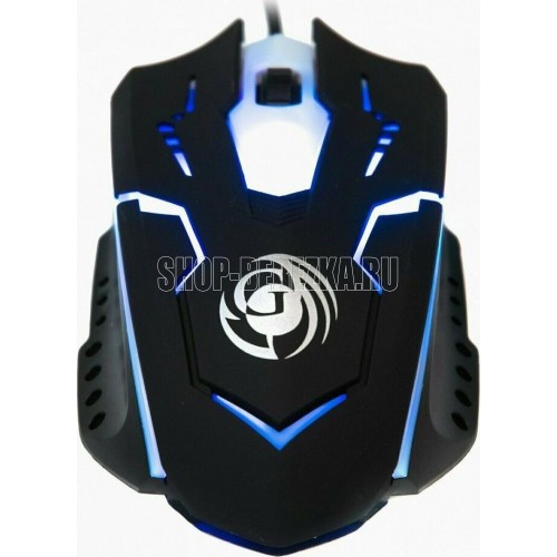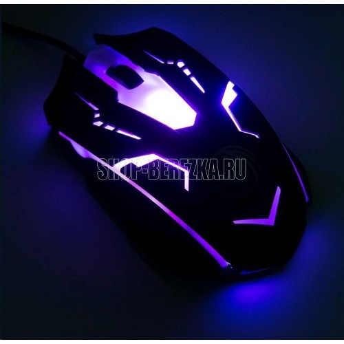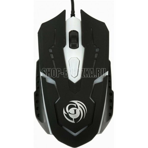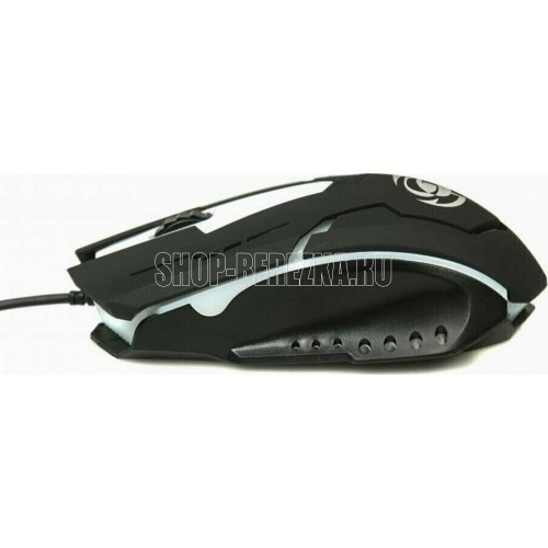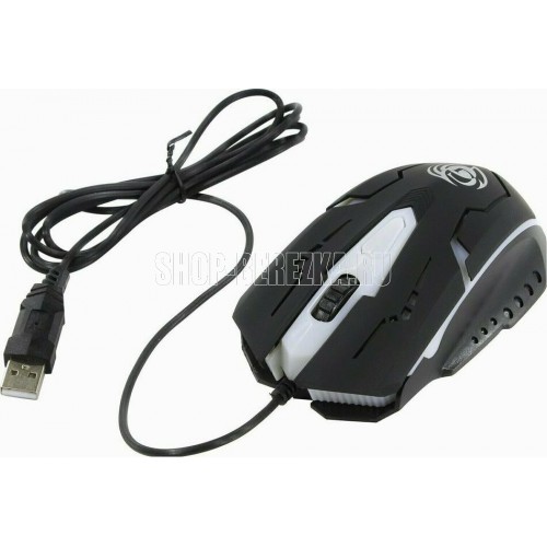 Игровая оптическая проводная мышь с подсветкой. Крупная симметричная мышь - подходит одинаково и для правшей, и для левшей. Подсветка изменяется циклически, цвета: белый, голубой, синий, фиолетовый, оранжевый, красный. Матовый черный пластик, верхняя панель с кнопками - пластик софт-тач. Динамически изменяемое разрешение циклически центральной кнопкой (800/1000/1200/1600 dpi). Количество кнопок - 4. Длина шнура - 1,5 м. Размер - 120*73*38 мм. Вес - 82 г.