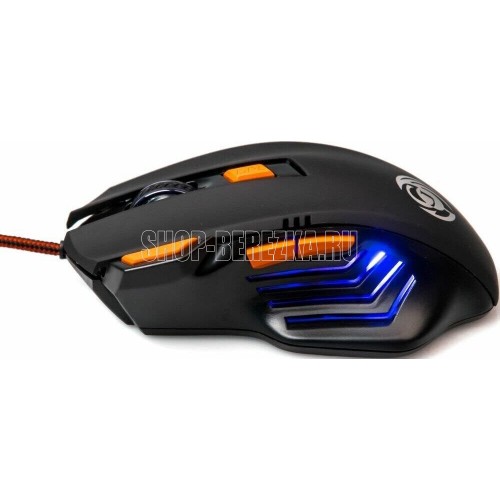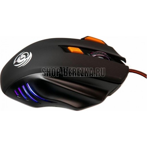 Геймерская мышь, интерфейс USB, оптическая (видимый диапазон), разрешение 800/1200/1600/2400, динамически изменяемое разрешение, изменяется циклически кнопкой "DPI", материал корпуса пластик софт-тач, количество кнопок 6, вертикальная прокрутка.