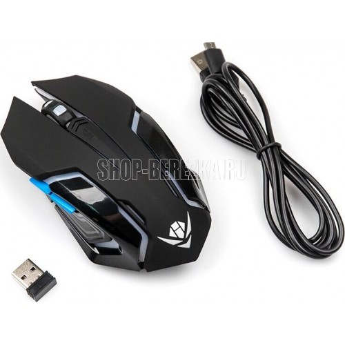 Тип: Оптическая (видимый диапазон), Разрешение: 800/1200/1600/2400, Динамически изменяемое разрешение, изменяется циклически кнопкой "DPI", Кол-во кнопок: 6, Прокрутка: вертикальная, полупрозрачный пластиковый ролик с резиновым ободом, Беспроводная: радиоинтерфейс 2.4 гГц, радиус действия до 10 метров, Съемные/встроенные аккумуляторывстроенный перезаряжаемый аккмулятор, Тип элементов питания: Li-Ion 400mAh, Блок питания / ЗУ: Кабель USB-MicroUSB для подзарядки встроенного аккумулятора, Длина кабеля, м: 1.5 (кабель для подзарядки).