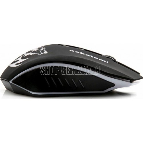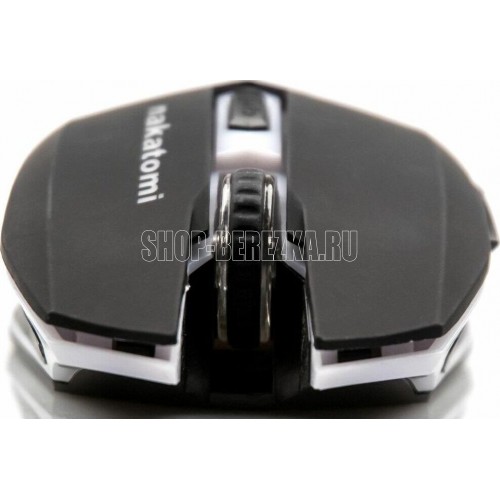 Интерфейс: USB, Тип: Оптическая (видимый диапазон), Разрешение: 800/1200/1600/ 2400, Динамически изменяемое разрешение, изменяется циклически кнопкой "CPI", Материал корпуса: матовый черный пластик, верхняя панель с кнопками - пластик софт-тач. Вставки из полупрозрачного светлого пластика (подсветка), Подсветка: красная, зеленая, синяя, фиолетовя, голубая - сменяется циклически, Количество кнопок: 6, Прокрутка: вертикальная, прозрачный пластиковый ролик с рифлёным резиновым ободом, Особенности модели: Крупная асимметричная мышь с дополнительными кнопками управления под большим пальцем правой руки. Будет удобна правшам с крупной ладонью. Боковые кнопки "вперёд" и "назад" с коротким ходом, Длина кабеля, м: 1.5м текстильная оплётка.