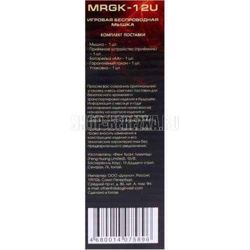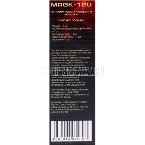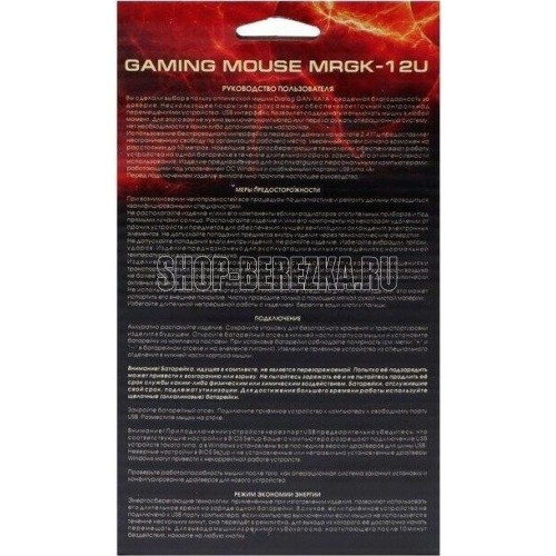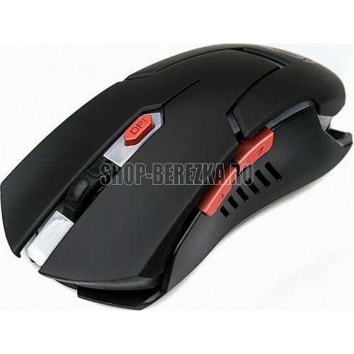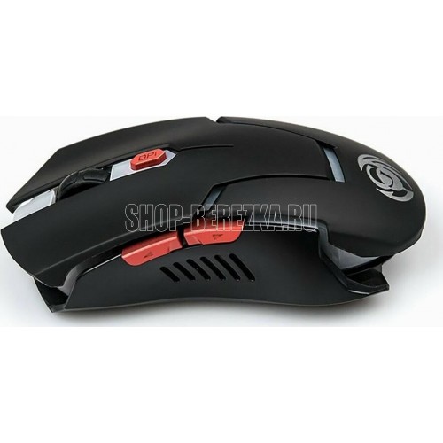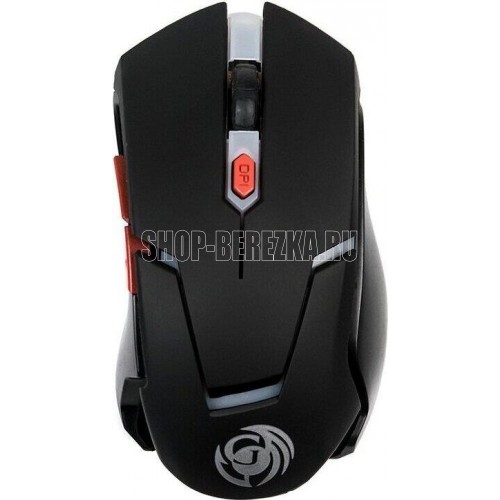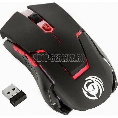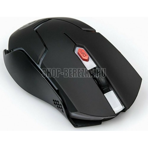 Мышь геймерская, беспроводная, количество кнпок - 6, интерфейс USB, оптическая (видимый диапазон), разрешение динамически изменяемое 600/800/1200/1600 dpi, материал корпуса - верхняя панель - пластик софт-тач, радиоинтерфейс 2.4 гГц, радиус действия до 10 метров.