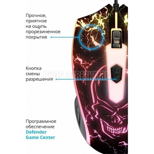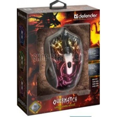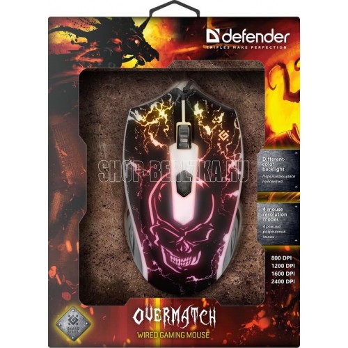 Мышь игровая, проводная, интерфейс подключения USB, количество кнопок - 3 + колесо-кнопка, изменяемое разрешение - 800/1200/1600/2400 dpi,