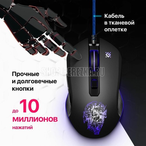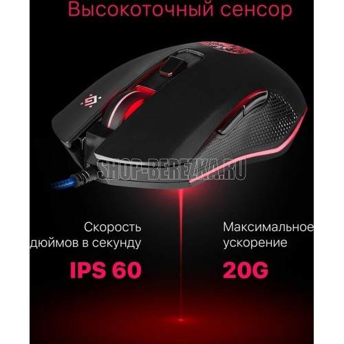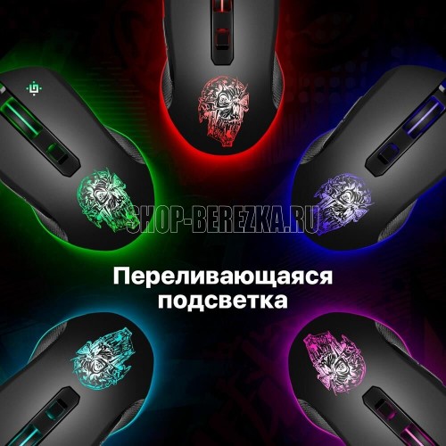 Мышь игровая, беспроводная, оптическая, интерфейс USB, количество кнопок - 5, колесо прокрутки, изменяемое разрешение - 1200/1600/3200 dpi, цветная подсветка, радиус действия до 10 м.