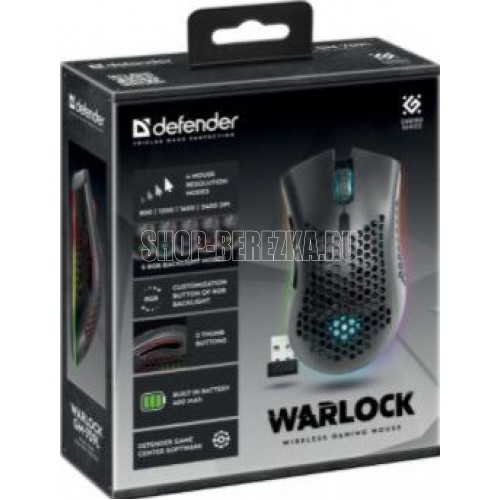 Мышь игровая, беспроводная, переливающаяся RGB подсветка, 5 режимов, интерфейс USB, 7+колесо прокрутки, изменяемое разрешение - 800/1200/1600/2400/ dpi, встроенный аккумулятор, емкость аккумулятора - 400 мА·ч, радиус действия - до 10 м.