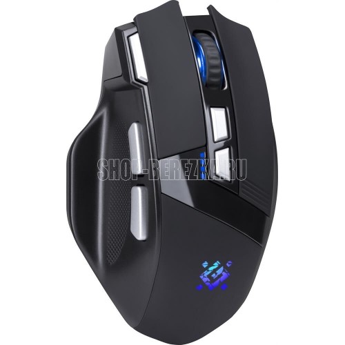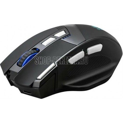 Мышь игровая, беспроводная, интерфейс подключения USB, тип сенсора - оптический, радужная подсветка, количество кнопок 7 + колесо-кнопка, разрешение изменяемое - 1200/2400/3200 dpi, емкость аккумулятора - 400 мА·ч, 5 программируемых кнопок, кнопка FIRE для шутеров, эргономичная форма, тефлоновые ножки, радиус действия до 10 м.