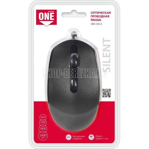 Мышь проводная, Бесшумные клавиши, 4 кнопки; износостойкое UV-покрытие с приятным на ощупь текстурным нанесением; бесшумные клавиши; эргономичный дизайн и удобный захват; отлично подходит для крупной руки; можно использовать как для левой, так и для правой рукой; 4 уровня DPI: 800/1200/1600/2400; длина кабеля 1,4 м