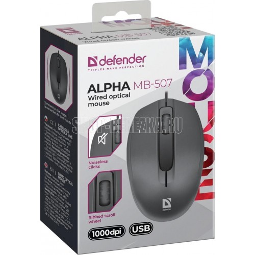 Мышь проводная, оптическая, интерфейс USB, 2 + колесо-кнопка, 1000 dpi, бесшумное нажатие кнопок, совместимость Windows 2000/XP/Vista/7/8/10 и выше, Mac OS X10, длина кабеля - 1,8 м.