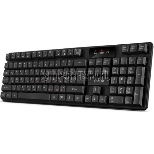Клавиатура беспроводная, количество клавиш 104, контакты клавиш мембранные , 12 мультимедийных (Fn) клавиш , интерфейс USB, частота радиоканала, ГГц 2,4, радиус действия - до 10м , индикатор низкого уровня заряда батареи.