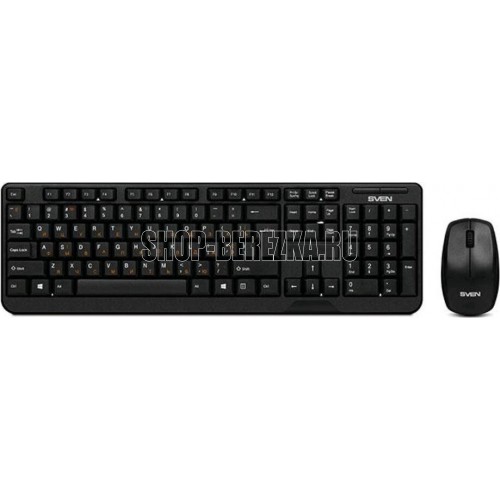 Беспроводной набор (клавиатура+мышь), количество клавиш 104, мышь оптическая, 2 + 1 (колесо прокрутки). 1000 dpi, влагоустойчивая конструкция, 2,4 ГГц USB-наноприемник, дальность действия комплекта – до 10 метров.