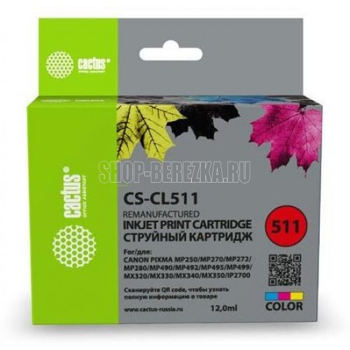 CACTUS Картридж струйный CS-CL511 CL-511 многоцветный (12мл) для Canon MP240/MP250/MP260/MP270/MP480/MP490