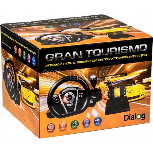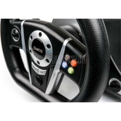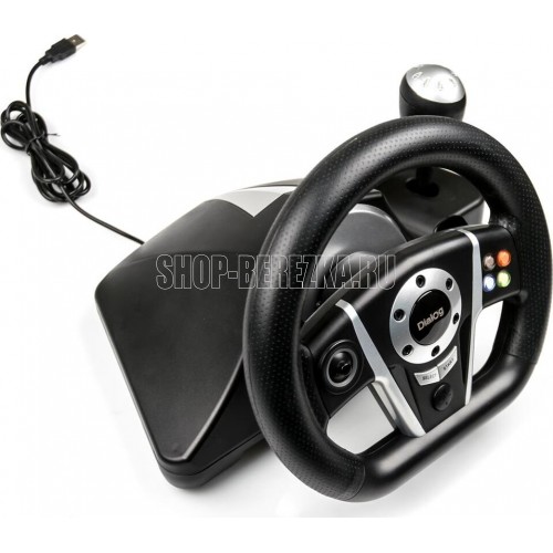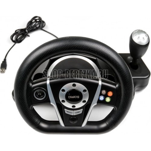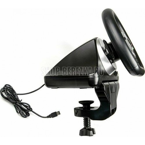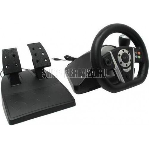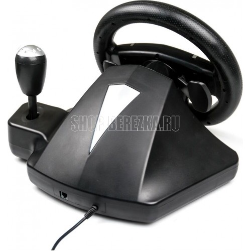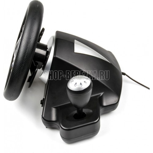 Джойстик-руль, с эффектом вибрации, интерфейс USB, двухпозиционный рычаг переключения скоростей. На рулевом колесе: 2 подрулевых лепестка для переключения скоростей, 8-позиционная навигационная крестовина, 4-кнопочная крестовина управления, крупная кнопка в центре, 2 кнопки Select и Start и четырехкнопочная крестовина в нижней части рулевого колеса.