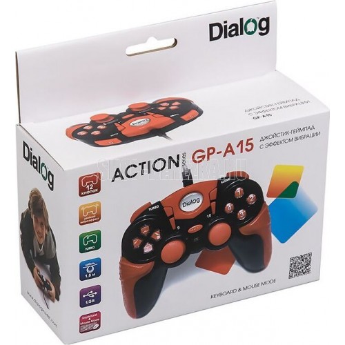 Геймпад с эффектом вибрации, количество кнопок управления: 12, интерфейс: USB 1.1 или 2.0, два вибромотора, поддерживаемые ОС: Microsoft Windows XP SP2/SP3, Vista SP2, Windows 7 SP1, Windows 8, Windows 8.1, Windows 10; Microsoft DirectX 9.0c или новее, длина кабеля - 1,8 м.