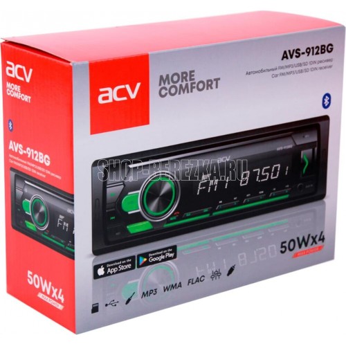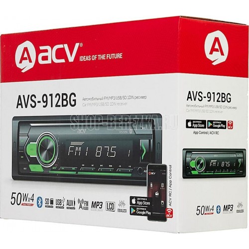 Магнитола с зеленой подсветкой 1 DIN, современным модулем Bluetooth ver. 4.0, поддерживает приложения ACV RC для Android и ACV Control для iOS. Оснащена 2 парами RCA стерео аудио выходов, читает MP3/WMA с USB и SD носителей.