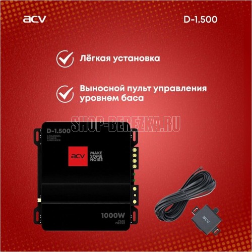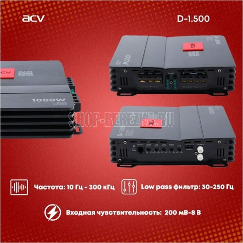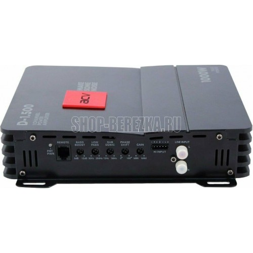 Стабильная работа на нагрузках: 1 Ом Bass Boost: Bass Boost плавный 0-18дБ Номинал предохранителя: 2 х 30А Диапазон частот: 10Гц ~ 300Гц Воспроизведение звука Пиковая мощность: 1000Вт Номинальная мощность 4 Ом: 300Вт х 1 Номинальная мощность 2 Ом: 500Вт х 1 Номинальная мощность 1 Ом: 650Вт х 1 Чувствительность: 200мВ-8В Отношение сигнал/шум: >96дБ Коэффициент гармонических искажений: (THD) @ 1кГц (40м): 0,15% Разделение каналов Разделение каналов: >45 дБ Low pass фильтр: 10-250 Гц Число каналов: 1 Общие характеристики Размеры: 180 x 48 x 220 мм