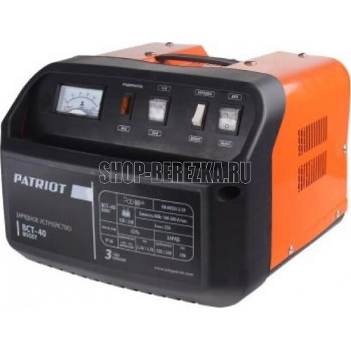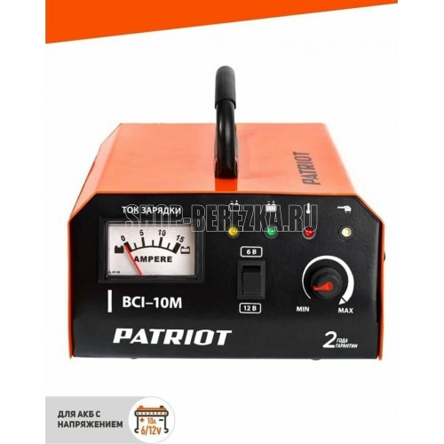 Зарядное устройство PATRIOT BCI-10M Возможность зарядки всех типов аккумуляторных батарей (WET, AGM, GEL) как стартовых, так и тяговых, и для ИБП. Контроль напряжения исключает перезаряд и «кипение» батареи. Емкость батарей, А*ч 10-150, Ток зарядки макс., А 10, Режим сохранения заряда, Макс. потребляемая мощность, кВт 0,4, Напряжение зарядка, В/А 12/6, Регулятор ограничения тока заряда, Входное напряжение, В 220, Автоматическое управление.
