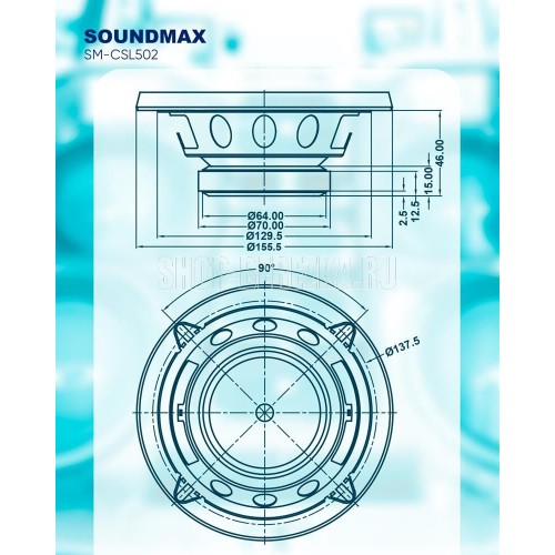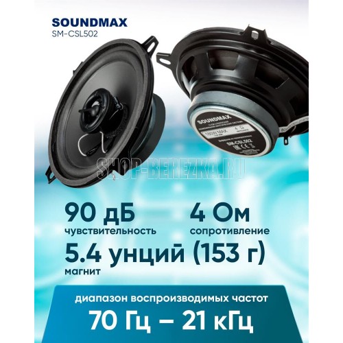 Размер 13 см. Коаксиальная АС. Количество полос 2. Максимальная мощность 180 Вт. Номинальная мощность 70 Вт. Материал НЧ-диффузора полипропилен. ВЧ-динамик 30 мм. Чувствительность 90 дБ. Сопростивление 4 Ом. Диапазон воспроизводимых частот 70Гц-21кГц. Магнит (Oz) 5.4. Вес 0,38 кг.