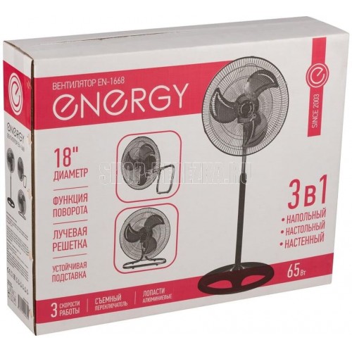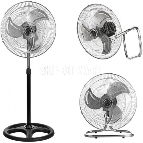 3 в 1 (напольный, настольный, настенный) Диаметр 18 Высота 130 см Диаметр подставки 50 см 3 скорости работы Функция поворота Алюминиевые лопасти Лучевая решетка Устойчивая подставка Мощность 65 Вт