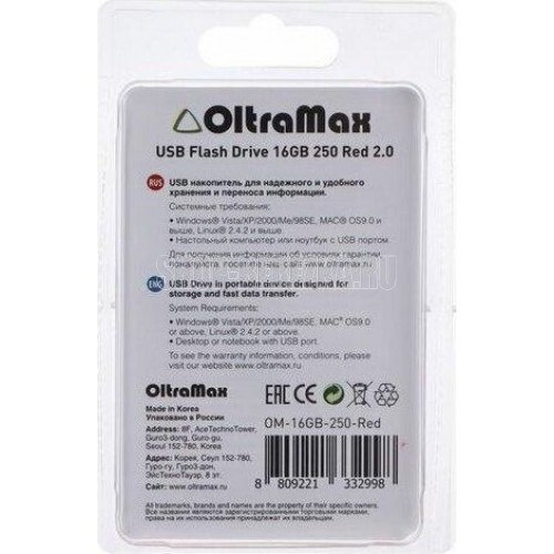 Объем - 16ГБ. Интерфейс подключения - USB2.0. Скорость чтения данных - 15МБ/с. Скорость записи данных - 8МБ/с. Материал корпуса - пластик, металл. Цвет - красный.