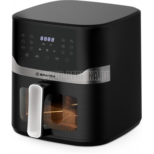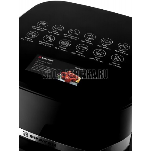 Мощность 1800 Вт Объем 10 л 12 программ: фри, мясо, голень, ребра, рыба, овощи, морепродукты, крылья, птица, пицца, сушка, кекс Корпус из высокопрочного термостойкого пластика Функция подогрева пищи Сенсорное управление LCD-дисплей Регулировка температуры 80–200 °С Таймер до 60 мин Съемная решетка с антипригарным покрытием Звуковой сигнал готовности блюда Электропитание 220-240 В, ~ 50-60 Гц