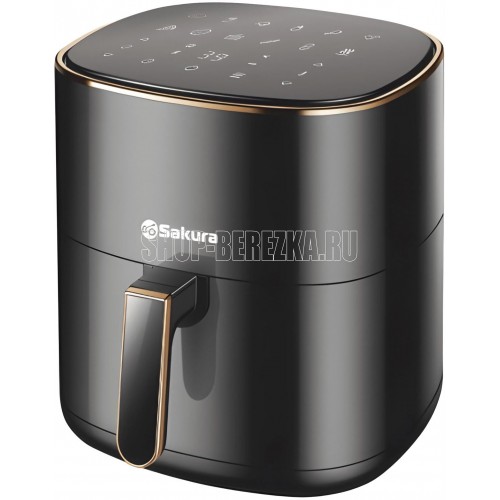 Аэрогриль, 1500 Вт, чаша с антипригарным покрытием Teflon 6,0 л, таймер на 60 минут, регулировка температуры 80-200С, сенсорное управление, LED дисплей, готовит без масла или с минимальным его использованием. Автоматическое отключение питания при извлечении корзины. 8 предустановленных программ меню. Подходит для всех блюд, которые готовятся в духовке. Размер устройства без упаковки: 348?280?317 мм. Цв.черный. Длина шнура: 0.9м.