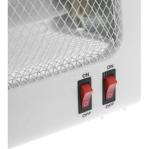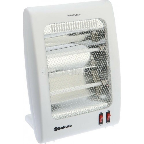 Обогреватель инфракрасный. Мощность 900 Вт, кварцевый нагревательный элемент, 2 режима работы (450 Вт/900 Вт), равномерный нагрев, бесшумная работа, автоматическое отключение при опрокидывании. Не сжигает кислород и не сушит воздух. Корпус выполнен из термостойкого пластика. Защитная решётка, съёмные ножки, длина шнура 1,10 м. Цвет корпуса: белый