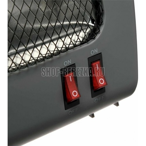 Обогреватель инфракрасный. Мощность 900 Вт, кварцевый нагревательный элемент, 2 режима работы (450 Вт/900 Вт), равномерный нагрев, бесшумная работа, автоматическое отключение при опрокидывании. Не сжигает кислород и не сушит воздух. Корпус выполнен из термостойкого пластика. Защитная решётка, съёмные ножки, длина шнура 1,10 м. Цвет корпуса: серый.