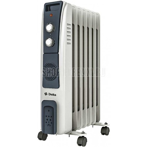D12F-7 Обогреватель масляный с вентилятором o 7 секций o Современный дизайн o Быстрый и бесшумный нагрев o 3 режима регулировки мощности нагрева o Регулируемый термостат обеспечивает постоянную температуру в помещении o Световые индикаторы работы o Колеса и ручка для удобного перемещения o Отсек для хранения шнура o Защита от перегрева o Встроенный вентилятор мощностью 400 Вт для быстрого обогрева помещений o Максимальная площадь обогрева 15 м2 o Номинальная потребляемая мощность 1500 Вт o Диапазон номинальных напряжений: 220-240 В ~ 50 Гц o Цвет: светло-серый размер секции: 125x580мм