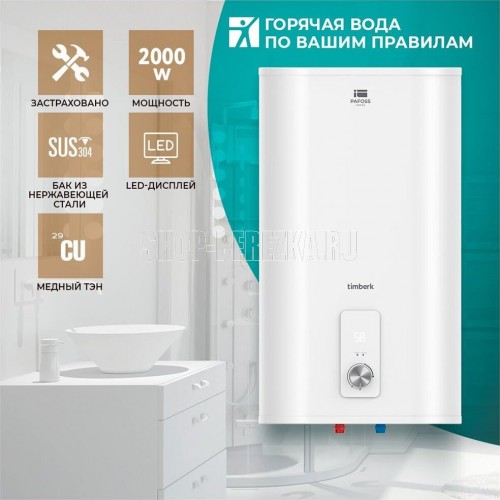 "Серия Pafoss. Объем 80 л. Мощность 2000Вт, Стальной корпус с белоснежной эмалью; ""Сухой"" нагревательный элемент; Внутренние резервуары из нержавеющей стали SUS304 толщиной 1,2 мм; Слой высококачественной изоляции; Система защиты 3D LogicR: DROP Defense — защита от протечки и избыточного давления внутри бака, SHOCK Defense — защита УЗО, HOT Defense — двухуровневая защита от перегрева; Сверхпрочная система переливов гарантирует эффективное смешивание и равномерность нагрева Габариты прибора, мм 992x495x270 Вес брутто, кг 19.7"