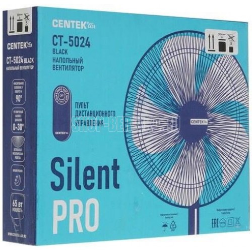 CENTEK CT-5024 BLACK (черный) 65Вт, SILENT PRO Напряжение питания 220-240 В~50/60 Гц Мощность 65 Вт Кол-во скоростей 4 Кол-во лопастей 5 Таймер до 7.5 часов Пульт дистанционного управления Ночной режим Низкий уровень шума Диаметр решетки 44,5 см ОПИСАНИЕ ПРИБОРА Регулировка высоты прибора Регулировка наклона моторного блока в вертикальной плоскости Автоматический поворот в горизонтальной плоскости 90°