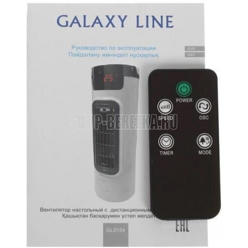 GALAXY LINE GL 8154 (12шт) Вентилятор настольный с дистанционным управлением 40 Вт, высота 35,5см, 3 режима работы, 3 скорости потока воздуха, автоматическое вращение на 65°, сенсорное управление, ЖК-дисплей, таймер на 7,5часов, пульт дистанционного управления, питание 220-240В,50Гц