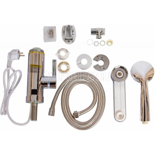 Водонагреватель проточный 2-в-1 Мощность: 3300 Вт Цифровой дисплей с индикацией температуры Защита от перегрева Регулировка температуры 30-60 ? Возможность работы при низком давлении воды: 0.04Mpa Максимальное давление воды: 0.5Mpa Минимальный расход воды: 1 л/мин Режим работы: Ручной хвостовик Уровень влагозащиты: IPX4 Термовыключатель на 110°C Материал: ABS Цвет: серебристый Размер соединения: G1/2"" (внешняя резьба) Длина кабеля питания: 1,2 метра Напряжение: 220В/Номинальный ток: 13,6 А