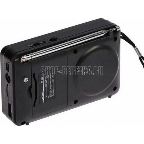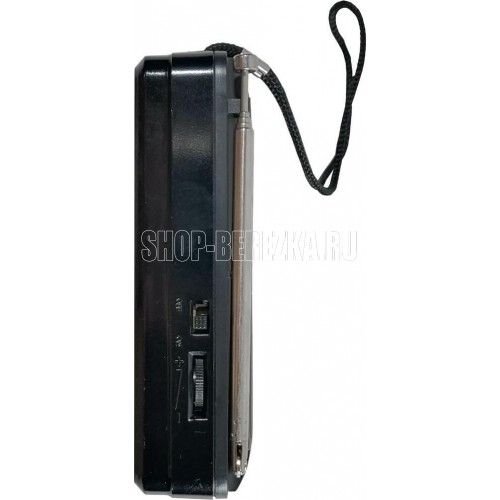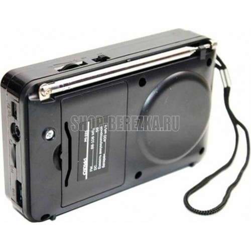 Цифровой тюнер, FM диапазон (FM-64-108МГц), автонастройка в FM диапазоне на 34 станции, 1 динамик (монозвучание) мощностью Ф57mm/4Ом/3W, питание 5В, аккумулятор типа BL-5C, емкостью 400мА/ч, размер 114*33*73мм, дисплей, воспроизведение с USB, microSD (TF), разъем для внешнего питания 5В, телескопическая антенна, разъем под наушники, ручка для переноски.