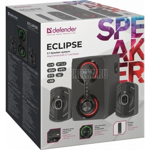 Акустическая система, Bluetooth 5.0, суммарная выходная мощность (RMS) 40 Вт, диапазон частот 40–20000 Гц, питание - 230 В / 50 Гц, встроенный FM-приемник, поддержка USB-накопителей и SD-карт, встроенный MP3-плеер, материал корпуса - МДФ, информационный дисплей на сабвуфере, беспроводной пульт ДУ, габаритные размеры - 30.0 x 26.2 x 32.5 см