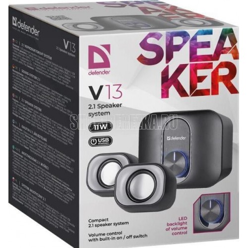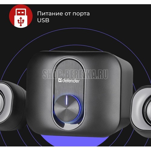 Компактная акустическая система 2.1 Светодиодная подсветка регулятора громкости Регулятор громкости звука со встроенным выключателем Питание от порта USB