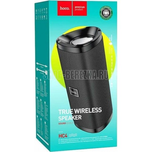 Колонка Bluetooth 5.0 5W 1500mAh Hoco HC4 Bella sports Версия Bluetooth 5.0; Частотный диапазон 120 - 20000 Гц; Производитель Hoco; Мощность одного динамика 5 Вт; Количество динамиков 2; Время работы 5 ч; Комплектация Колонка, инструкция, упаковка; Страна производитель Китай; Вид колонки Bluetooth; Описание Беспроводная Bluetooth-колонка Hoco HC4 поразит любого своим чистым и громким звуком. Представленная акустика может воспроизводит музыку через Bluetooth, AUX кабель и даже microSD карты. Колонка имеет форму цилиндра, и внешне напоминает небольшую бочку. По бокам находится тканевая сетка, она закрывает динамики. Наверху расположен аккуратный и удобный пульт управления, сбоку веревочка для транспортировки аксессуара и небольшой индикатор работы.
