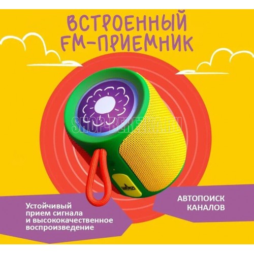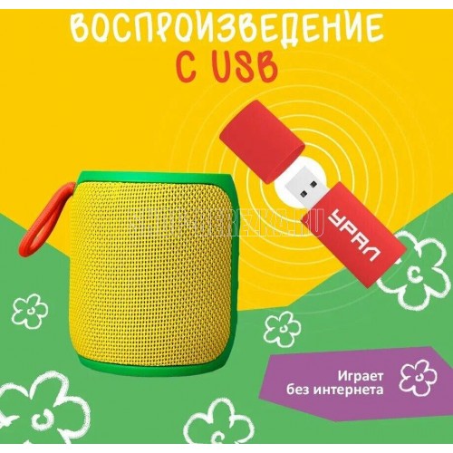 Максимальная выходная мощность, Вт 2 x 8 Диапазон частот, Гц, не уже 75 – 20000 Отношение сигнал/шум, дБ, не менее 80 dB Коэффициент гармоник, %, не более 0,1% Степень защиты корпуса от пыли и влаги: IP67 Габаритные размеры (ДxШxВ), мм 95x84x84 Вес, г 320. Портативная колонка ТТ М3+ мини "колобок" предназначена для воспроизведения детских сказок и аудиозаписей. Возможность воспроизведения контента с USB: в отличие от обычных детских колонок с предустановленными сказками, в эту модель можно вставить любую флешку с аудиозаписями или аудиокнигами для детей. Цветовая гамма колонки специально подобрана для восприятия детьми как игрушки, делая её не только полезным, но и привлекательным устройством. Колонка оснащена встроенным радиоприемником, позволяя наслаждаться разнообразием радиостанций. Влагозащита IP67 делает колонку безопасной для использования детьми и устойчивой к возможному контакту с водой.