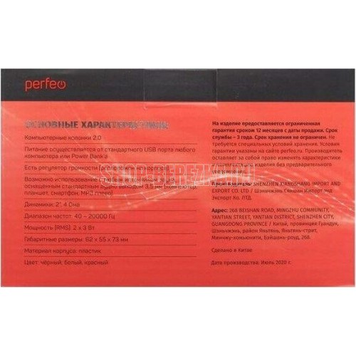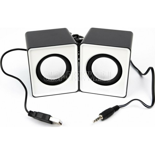 Компьютерные колонки 2.0. Питание осуществляется от стандартного USB порта любого компьютера или Power Bankа. Есть регулятор громкости (расположен на кабеле). Возможно использование с любым источником звука, оснащенным стандартным аудио выходом 3,5 мм (компьютер, планшет, смартфон, MP3 плеер). Динамики: 2”, 4 Ома. Диапазон частот: 40 – 20000 Гц. Мощность (RMS): 2 х 3 Вт. Габаритные размеры: 62 х 55 х 73 мм. Материал корпуса: пластик.