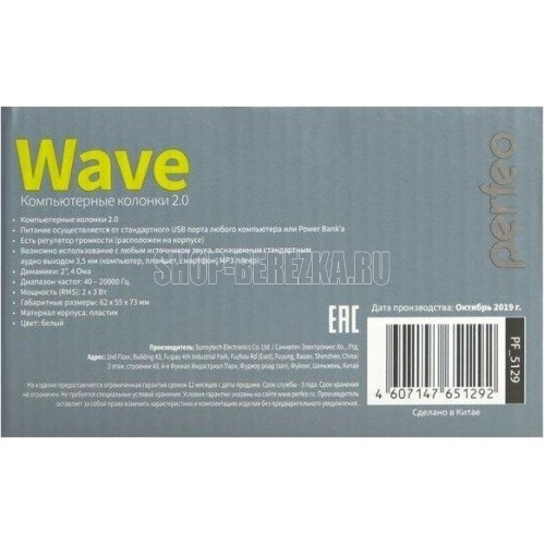 PERFEO (PF_5129) WAVE PF-128-W. белый