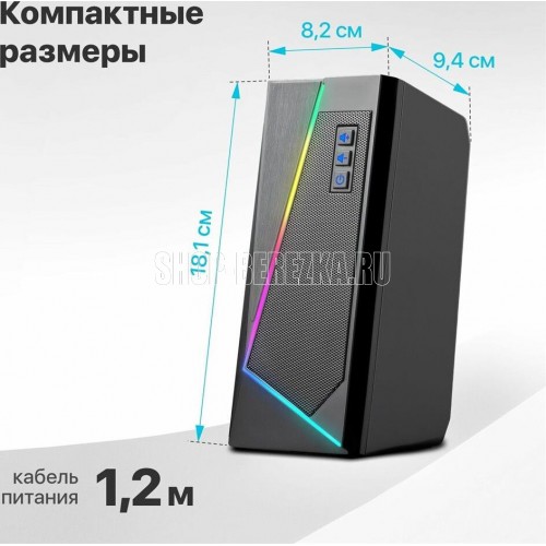 Bluetooth 5.0 Управление функциями с помощью касаний корпуса Светодиодная подсветка Регулятор громкости звука Кнопка включения/выключения питания Питание от порта USB