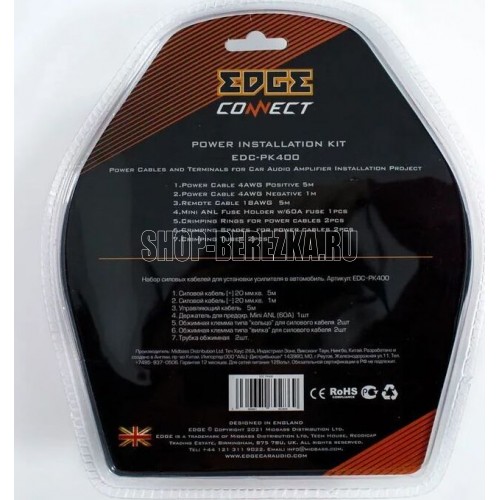 Набор силовой 4Ga для установки автомобильных усилителей Кабель силовой 4Ga оранжевый - 5метров (ССА) Кабель силовой 4Ga черный - 1метр (ССА) Управляющий провод синий 18Ga - 5 метров (ССА) Держатель для предохранителя Mini-ANL - 1 штука Предохраниитель Mini-ANL 60A - 1 штука Кольцо обжимное 4Ga - 2 штуки Вилка обжимная 4Ga - 2 штуки Обжимные трубки для 4Ga - 2 штуки